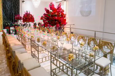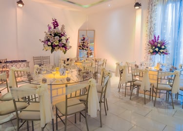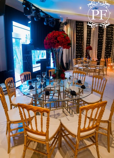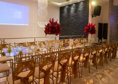 Recepción Profiesta, ofrece a sus clientes su exclusivo salón de eventos Romina, el cual tiene una capacidad para recibir a 120 invitados.